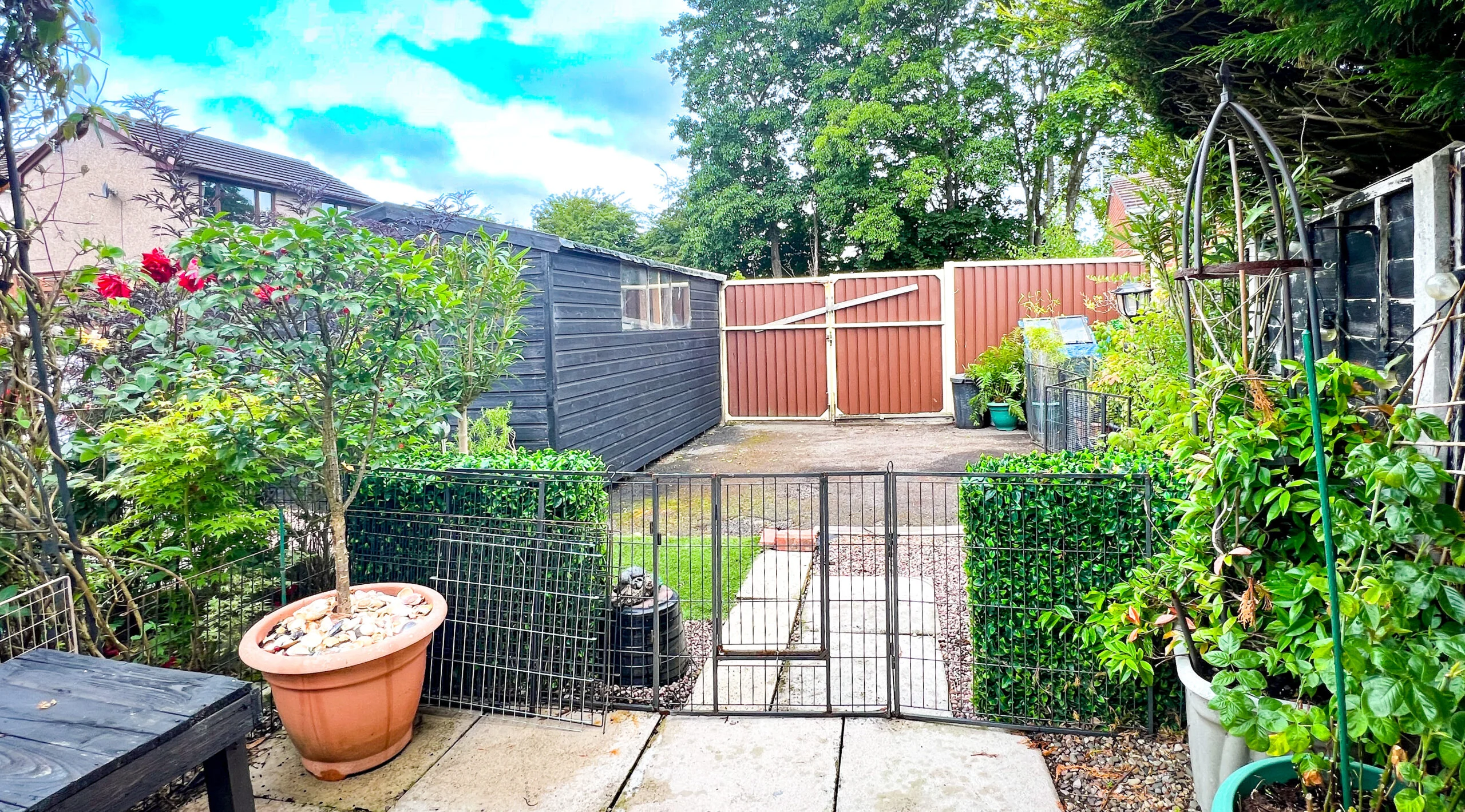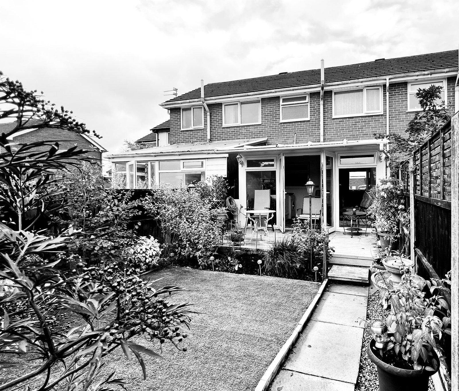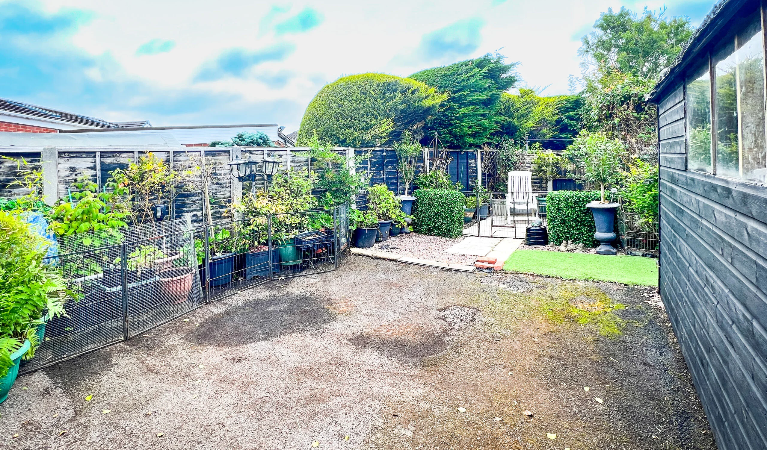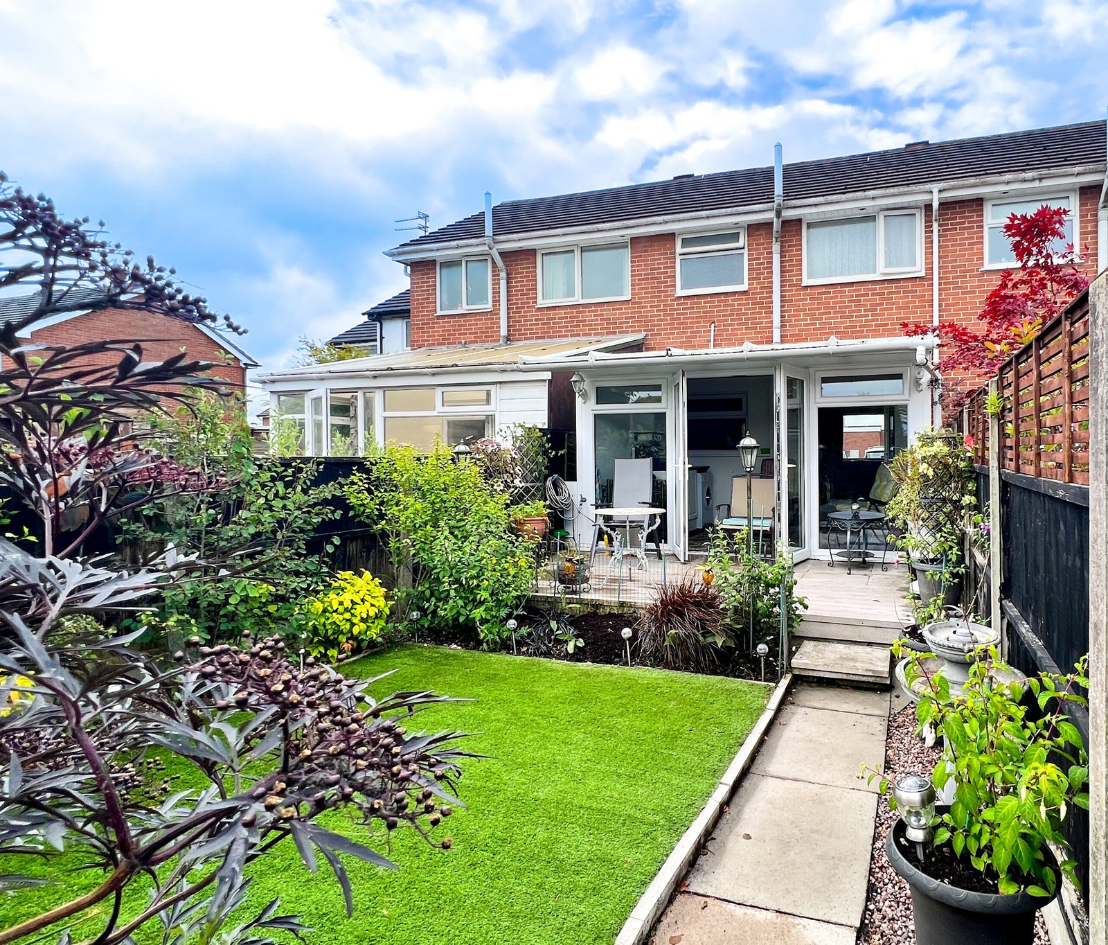 The conservatory added around 8 years ago, is a great addition to this home fitted with extra units. A perfect room to dine or simply sit and relax as your quiet space? The patio doors at the rear of the conservatory open up to the garden. Filled with flowers and plants, it is pleasing to the eye, yet very low maintenance, thanks to the artificial grass laid here. A handy shed is perfect for storage. The garden is much larger than expected for this home and additional parking will be so useful for when friends and family come to stay.